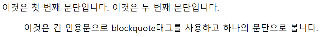 블록인용구는 길이가 긴 잉용문에 쓸 때 사용하고 <blockquote>태그를 사용하여 표현할 수 있다. <blockquote>태그는 문단으로 구분하여 나타냅니다.